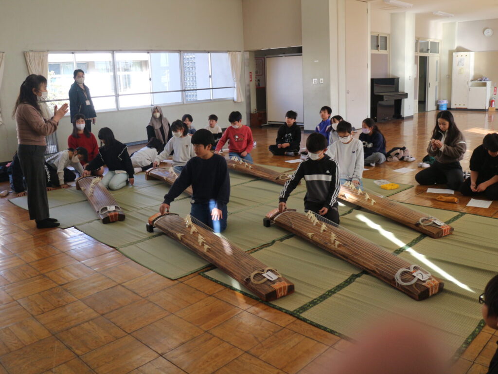 今日は琴体験を行いました。琴の音が校内に響き渡り豊かなお上品な気持ちになりました。